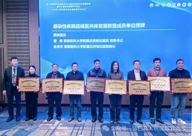 镇巴县人民医院党委书记李辉鹏、副院长庞虎波、感染科主任陈恩帮受邀参会。镇巴县人民医院于全国17000余家县级医院中脱颖而出,成为首批103家成功获授“国家传染病医学中心(北京)县域医共体发展联盟成员单位”荣誉称号的单位之一,标志着镇巴县传染病防治工作迈入国家级传染病防治联盟平台。