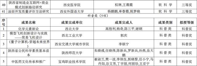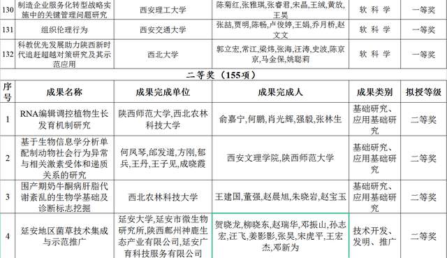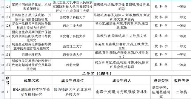 按照陕西省教育厅《关于做好2022年度陕西高等学校科学技术研究优秀成果奖推荐工作的通知》,经各校推荐、形式审查、评前公示、专家评审、特等奖答辩、大评委会审议等程序,确定拟授奖成果360项,其中特等奖27项、一等奖132项、二等奖155项、三等奖41项、科普奖5项,现予公示,接受社会监督。