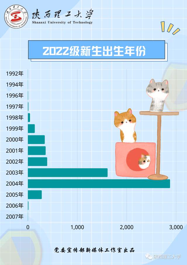 陕西理工大学官微发布2022级新生大数据。该校年龄最小的新生为14岁,出生于2007年年末。