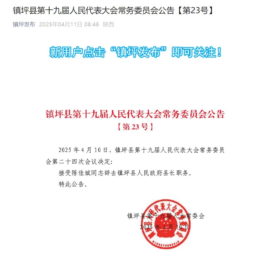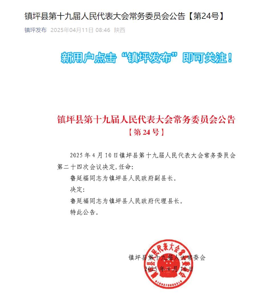 4月11日,镇坪县第十九届人民代表大会常务委员会发布公告。具体如下: