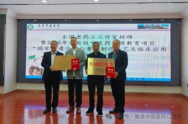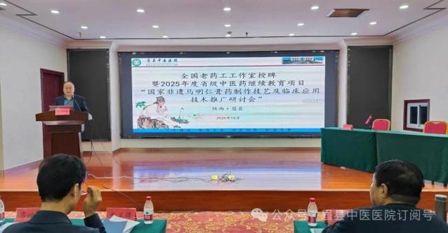 10月14日,全国老药工传承工作室授牌仪式暨2025年度省级中医药继续教育项目“国家级非遗马明仁膏药制作技艺及临床应用技术推广研讨会”在眉县召开。约200名各级医疗机构中医药从业者、相关负责人及非遗爱好者参会,共探中医药传承创新与非遗技艺临床转化。陕西中医药博物馆馆长白吉庆、陕西省中医药研究院中药研究所主任王卫锋、西安明仁药业董事长马绪斌、总经理马绪良、全国老药工传承工作室负责人、眉县天源中草药开发有限公司曹公义、眉县卫健局党委委员、副局长李社强出席并讲话,会议由医院党总支书记李刚主持,院长郑少华致辞。