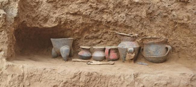 这是陕西榆林石峁遗址墓葬M13壁龛器物(资料照片)。新华社发(国家文物局供图)