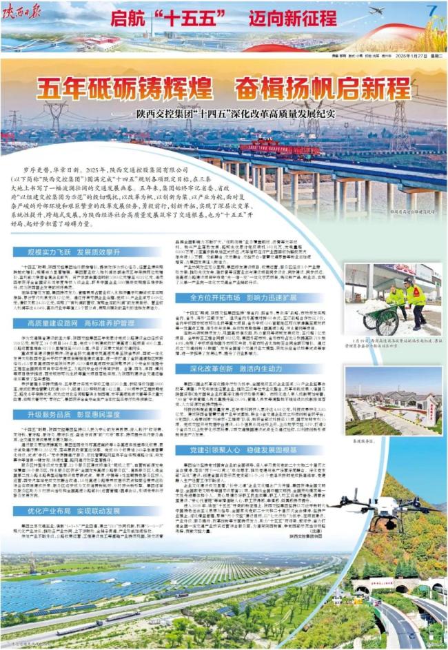 岁序更替,华章日新。2025年,陕西交通控股集团有限公司(以下简称“陕西交控集团”)圆满完成“十四五”规划各项既定目标,在三秦大地上书写了一幅波澜壮阔的交通发展画卷。五年来,集团始终牢记省委、省政府“以组建交控集团为示范”的殷切嘱托,以改革为帆、以创新为桨、以产业为舵,面对复杂严峻的外部环境和艰巨繁重的改革发展任务,勇毅前行,创新开拓,实现了深层次变革、系统性提升、跨越式发展,为陕西经济社会高质量发展筑牢了交通根基,也为“十五五”开好局、起好步积蓄了磅礴力量。