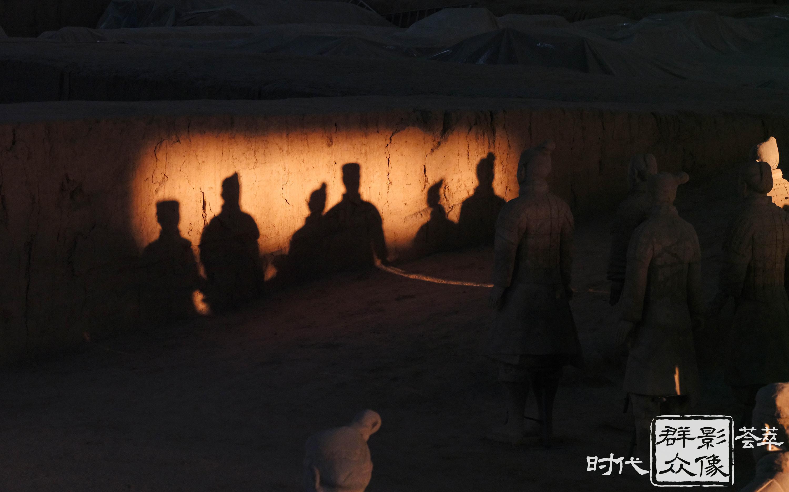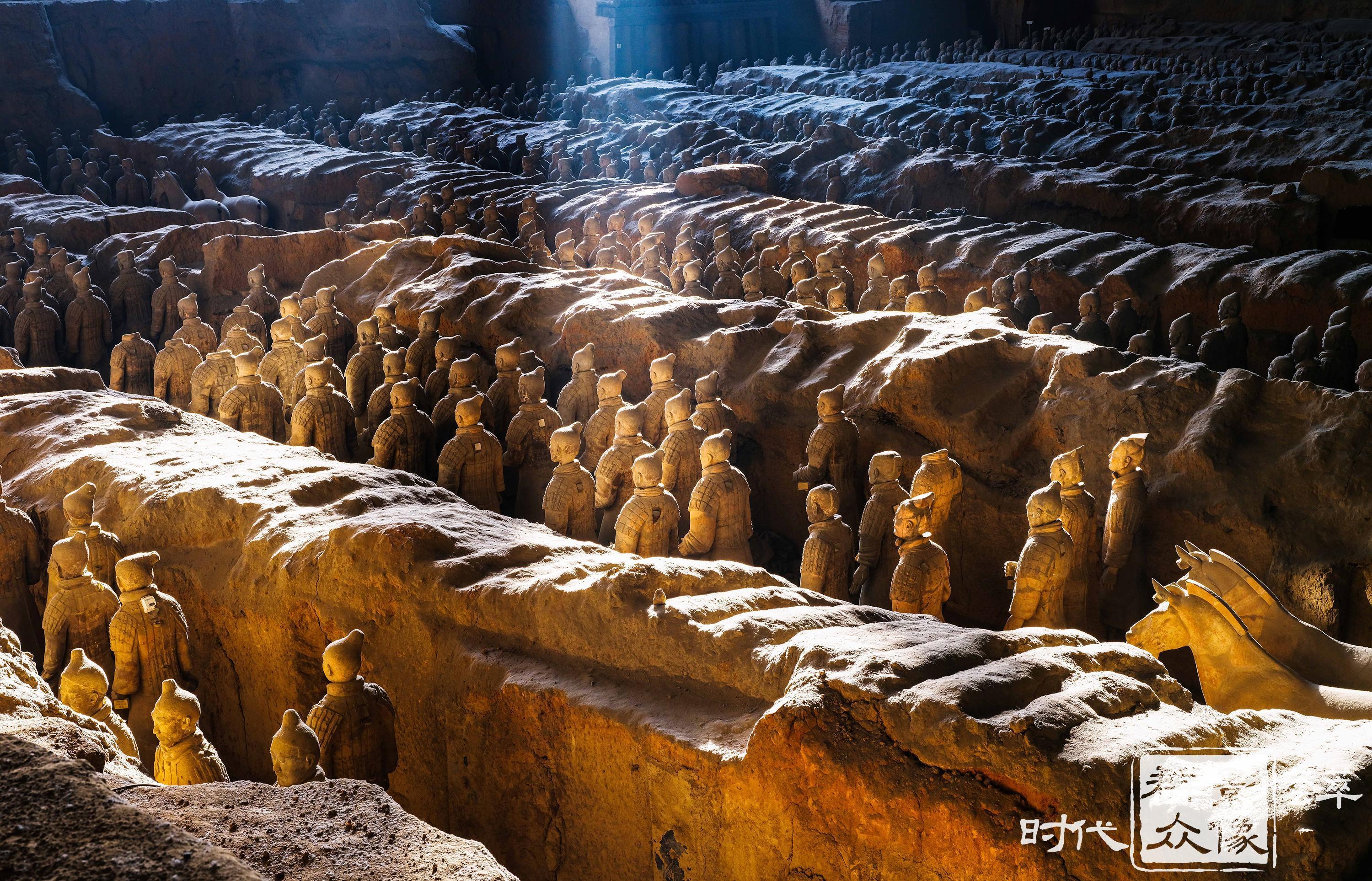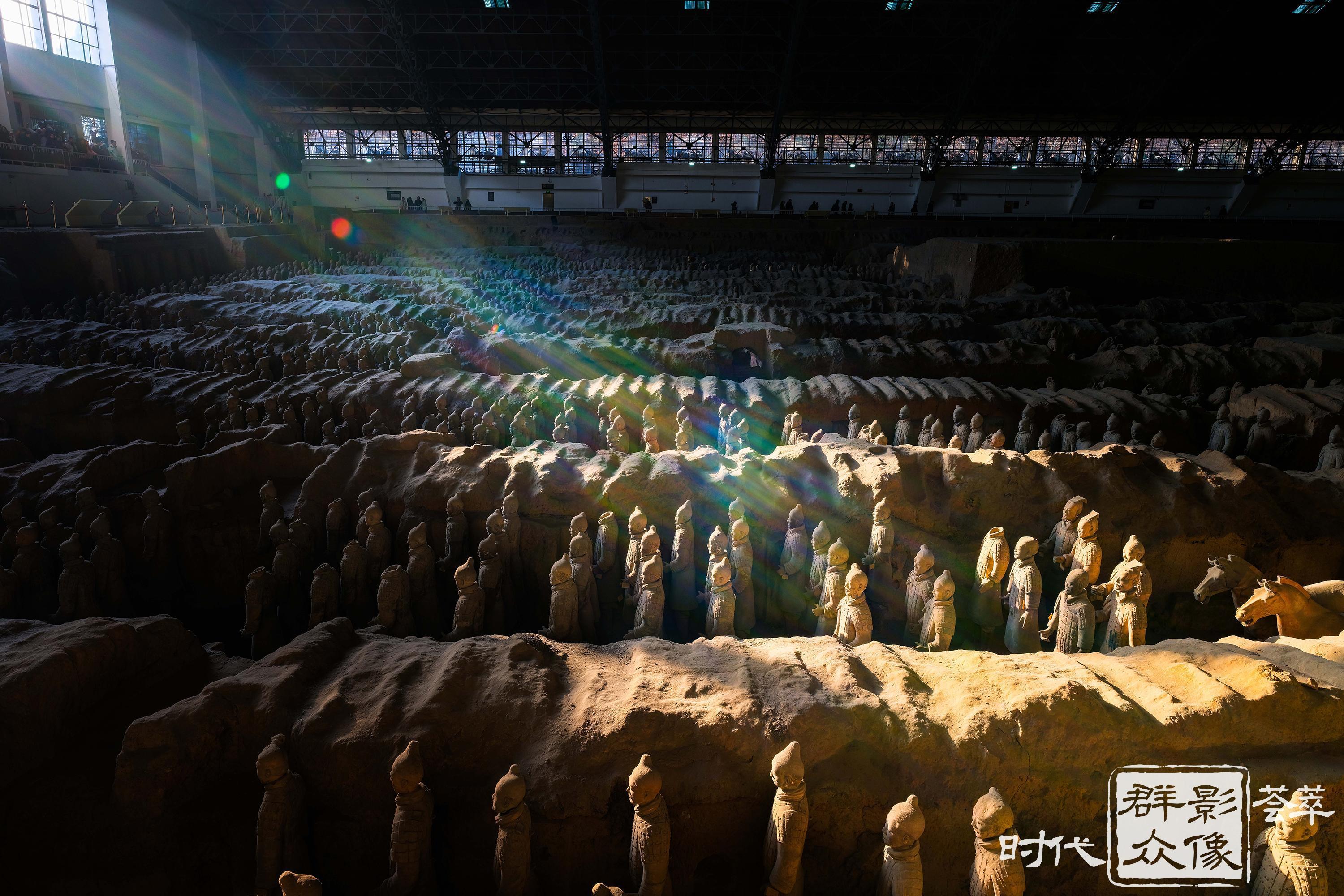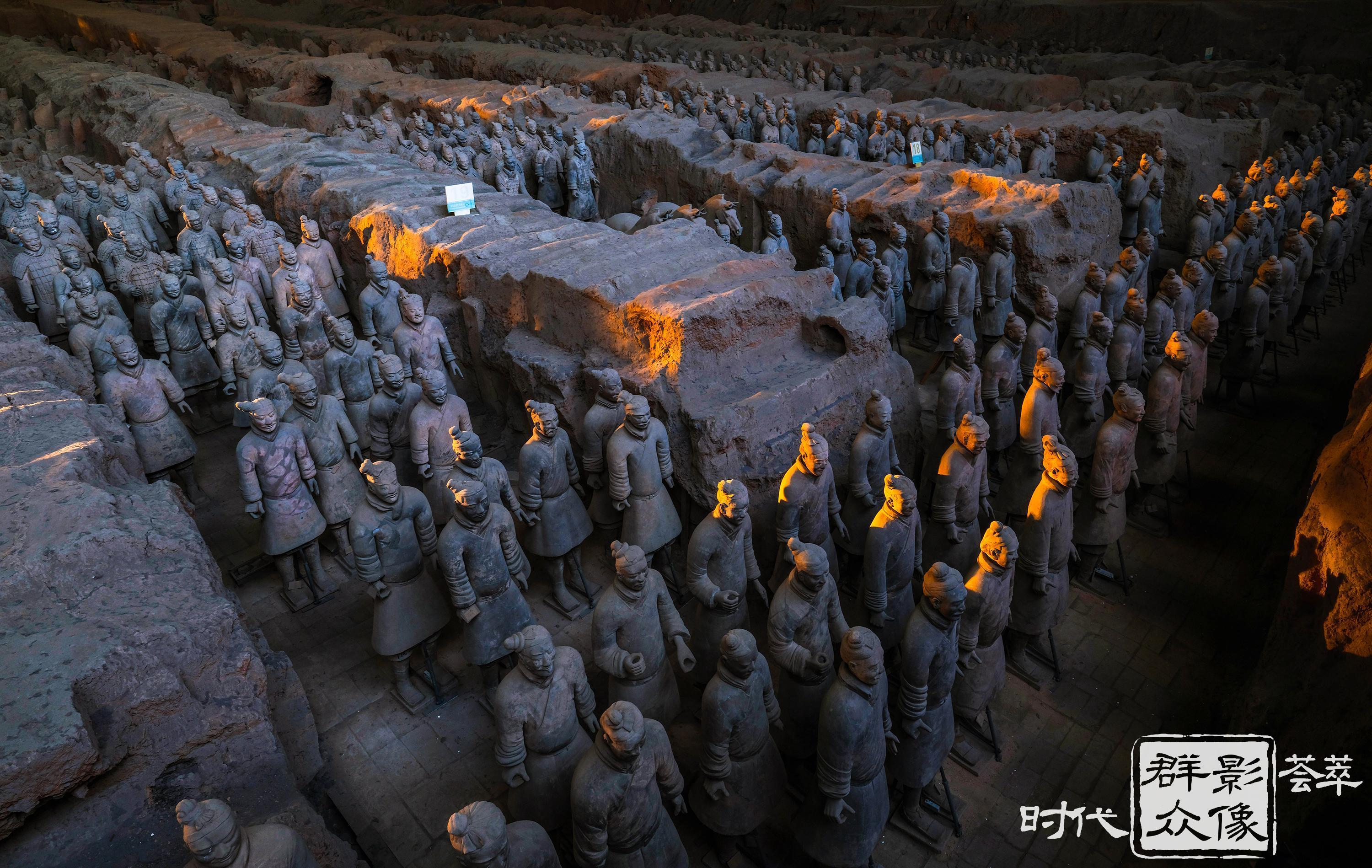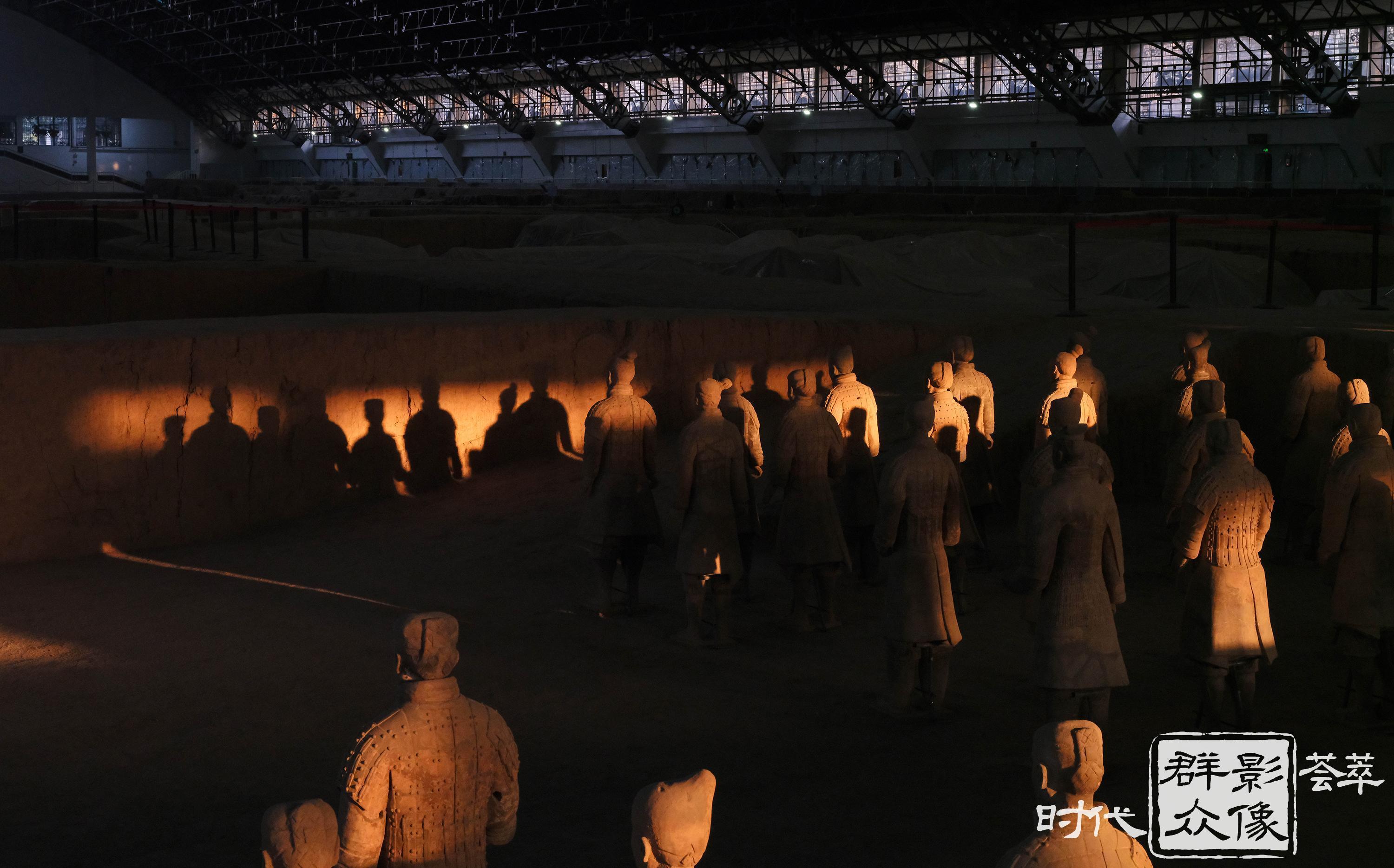 晨光洒在兵马俑上,沐浴暖阳的地下军阵此刻从睡梦中苏醒。(2024.12.29摄)