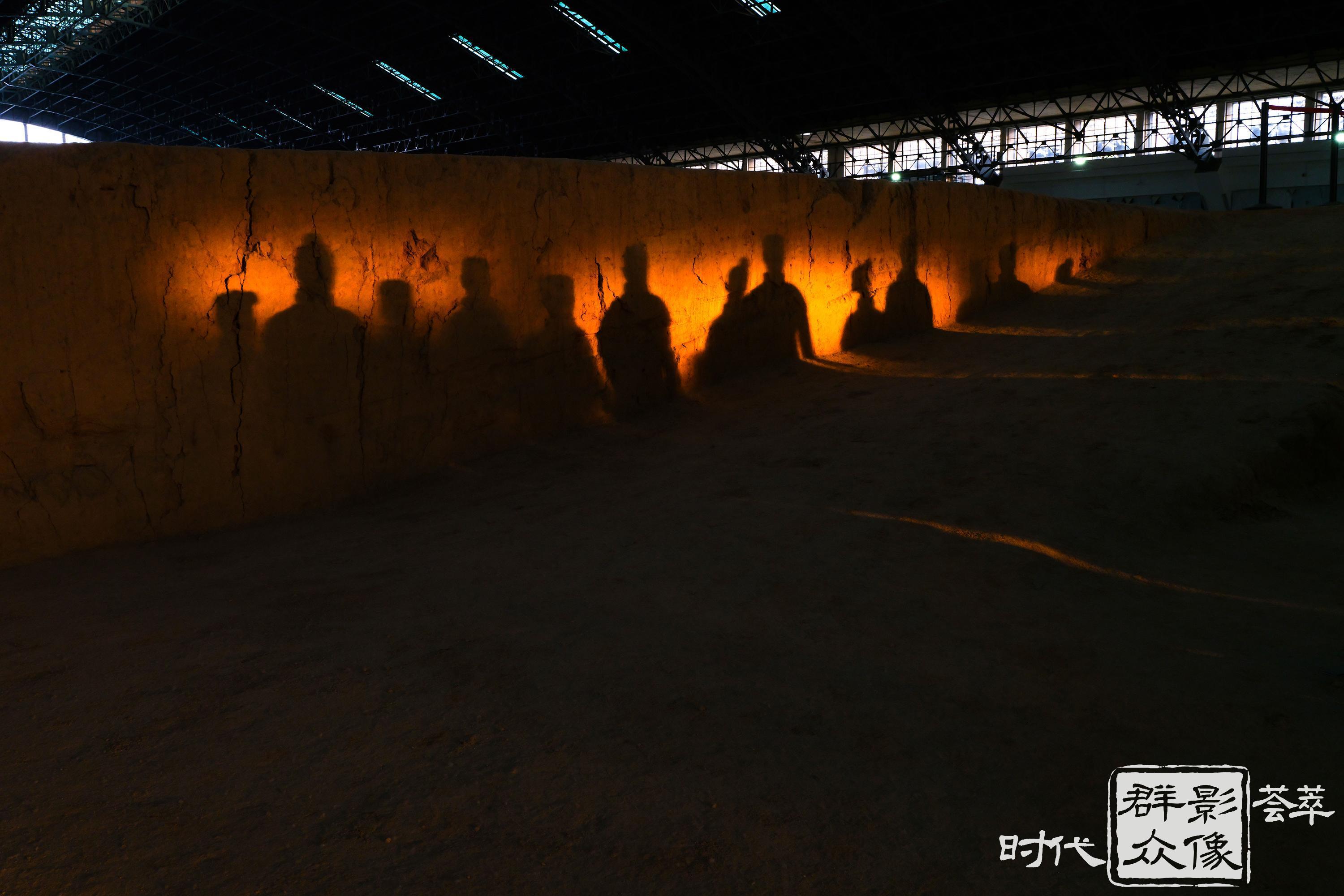 在兵马俑一号坑,由于冬至期间的特殊自然现象,只有短短的这些天里,太阳光透过大厅窗户方可抵达俑坑最远的地方,金色般的光束投射在陶俑身上,俑阵在光影里犹如复活的地下军团,幻化出沙场点兵与鼓角争鸣,光与影萦绕的历史烟云,让人产生无限遐思。(2022.12.18摄)