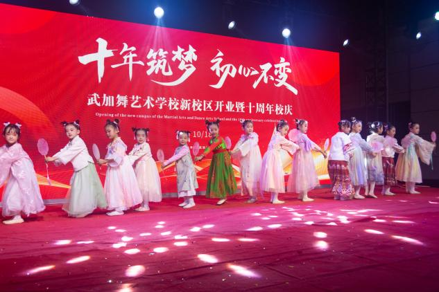 当晚,武加舞艺术学校举办校庆晚会。晚会涵盖歌舞表演、川剧变脸、武术散打、互动游戏等环节,师生共同登台,展现学校精神风貌与艺术底蕴,现场氛围温馨和谐,进一步拉近学校与家长、学生的距离。