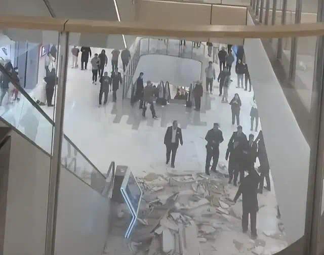 视频显示,发生吊顶脱落的地方位于商场一处扶梯上方3楼,脱落面积约30平方米,脱落的吊顶散落在扶梯上以及各楼层地面,现场扬起不少灰尘。据另一画面显示,有顾客被掉落的吊顶砸伤,可以看到伤者身旁地面上有血迹和带血的纸巾以及脱落的吊顶碎片。
