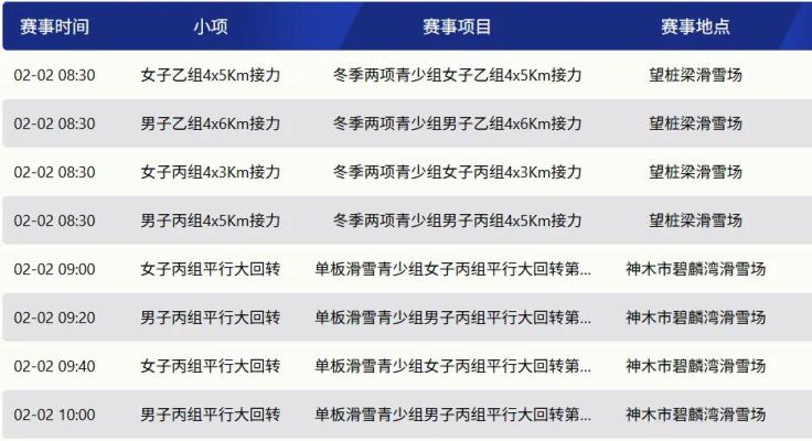 陕西省一冬会2月2日赛程速览