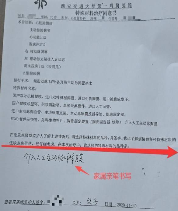 “由于西安交大一附院有熟人,而且熟人就在手术室工作,患者就通过熟人预约了床位,并开具了住院证,2020年11月12日入院。”医生说,他们进行了术前讨论,还考虑患者的多种因素,外科手术脑梗风险太大,更适合介入瓣膜手术。如不愿手术,可内科药物保守治疗。