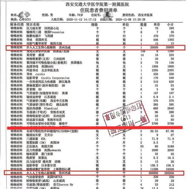 “根据全国所有中心常规介入瓣膜植入情况,考虑患者病情及花费情况,如第一个介入瓣膜植入不到位,都会免费相关费用。”医生说,西安交大一附院同样免收第一个瓣膜的相关费用。术中粘贴瓣膜标签为终身溯源制,第一个瓣膜标签做了医院存留,第二个植入瓣膜贴了标签。西安交大一附院作为公立医院严格按照诊疗规范及流程执行诊疗操作,所产生的各项费用均符合陕西省公立医院收费标准。