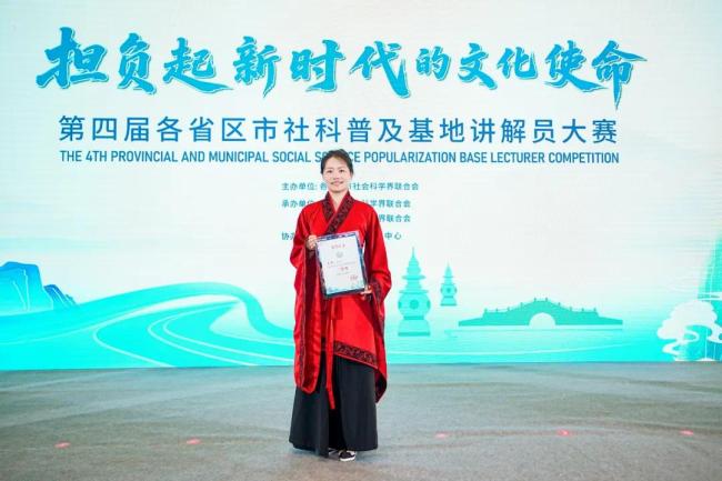 9月24日,第四届各省区市社科普及基地讲解员大赛在浙江温州圆满落幕。本次大赛由各省区市社科联组织选拔,浙江省社科联、温州市社科联承办,温州市新闻传媒中心协办,来自全国31个省区市的93名讲解员参赛,经过两天的激烈角逐,我院讲解员马昆荣获三等奖。