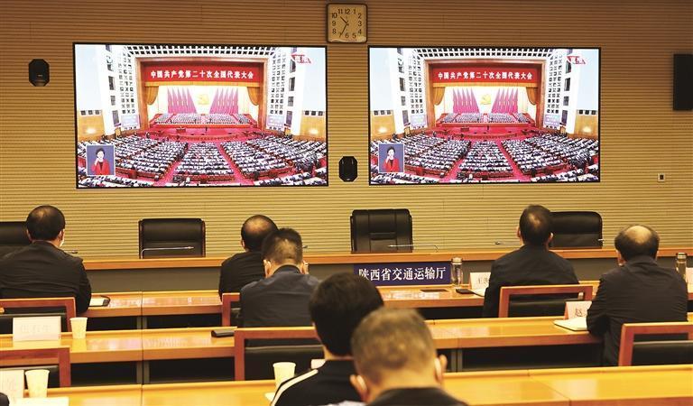 陕西省交通运输厅组织机关干部职工集中收看党的二十大开幕会直播盛况。
