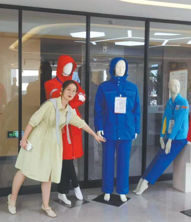 在陕西锦澜科技有限公司,工作人员介绍由该公司功能性面料做成的服装。陕西日报记者 肖倩 摄