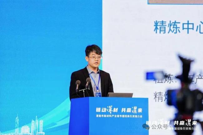 推介环节中,潼关县县委常委、副县长王飞全方位展示了潼关的发展底蕴与产业潜力。他从历史文化渊源、核心区位优势、产业基础现状等维度展开介绍,重点聚焦新能源新材料产业龙头集聚效应与黄金产业全链条升级优势,通过详实的数据与清晰的规划,向现场嘉宾呈现了潼关在新材料领域的独特竞争力与广阔合作空间。