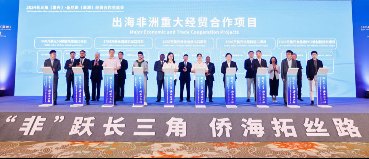 6月19日,2024长三角(嘉兴)·新丝路(非洲)经贸合作交流会在浙江省嘉兴市举办,坦桑尼亚和尼日利亚等多个非洲国家大使,以及来自非洲的40多个企业组织组成的商贸团参加交流会。