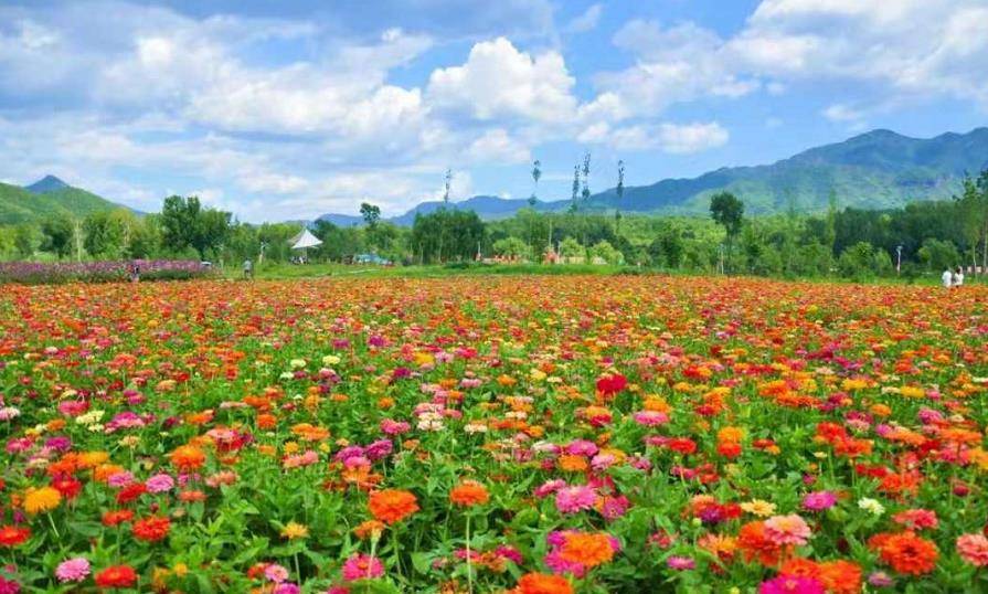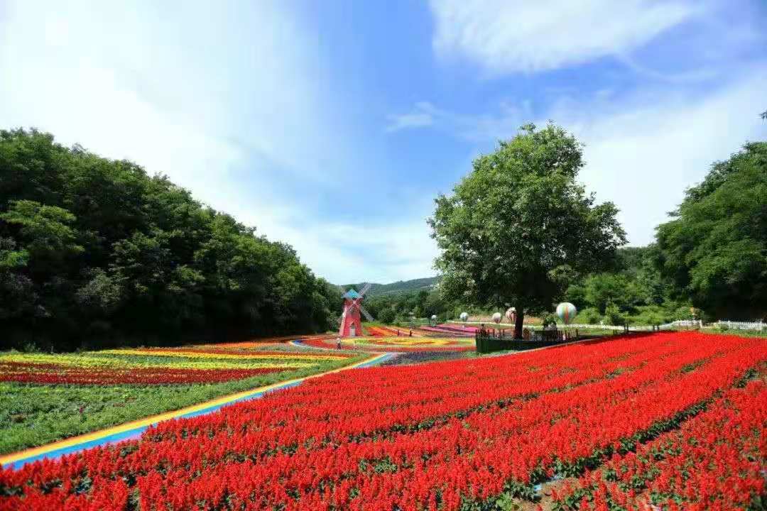 700余亩的面积,种植着非洲菊、百日草、虞美人、醉蝶等10余个花种。花儿依照地势渐次开放,各色花朵穿插,宛如流动的花海瀑布,美轮美奂。除了醉人花海,走进动漫花溪谷,还可以顺着步道闲适散步,参与各项游乐设施的玩耍,与荷兰风车、观赏热气球等景观雕塑合影,在特色民宿中留宿,都是独特的难忘体验。