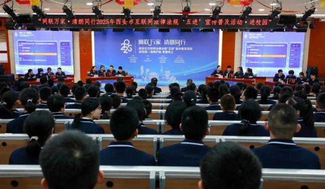 为深入做好网络普法工作,努力提升青少年网络法治意识,规范上网用网行为。10月27日,由西安市委网信办、市教育局、市司法局主办,碑林区委网信办、区教育局、区司法局协办,华商网、西安市第三中学承办的“网联万家·清朗同行2025年西安市互联网法律法规‘五进’·进校园-清朗护航青春向上”活动走进西安市第三中学,为师生们带来一场生动的法治教育“实践课”。此次活动获得了市公安局、市文化和旅游局、市市场监督管理局等部门的大力支持。
