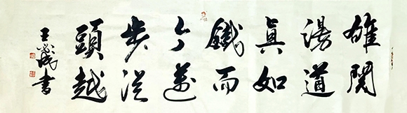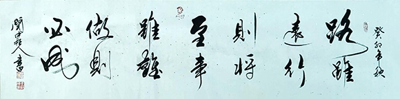 书法运笔追求笔尖立意、中锋铺毫、侧锋取妍,点画意到笔随;书法内容题材新颖,积极向上,传播正能量,弘扬主旋律;书法作品浑圆醇和、力透厚重,刚柔兼济、行云流水,自成一家。